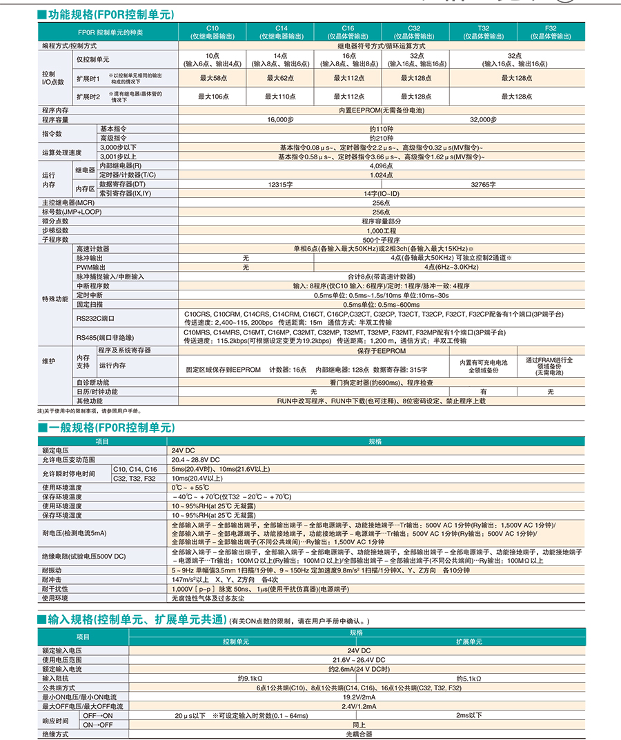 FPOR系列具有大容量程序/数据内存,超高速的运算速度