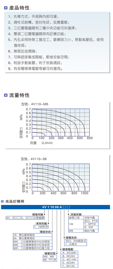 209100/4V130E-06-A/电磁阀五口二位、五口三位4V100系列