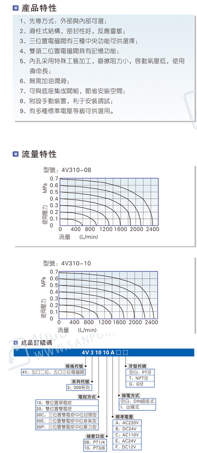 209115/4V330E-08-A/电磁阀五口二位、五口三位4V300系列