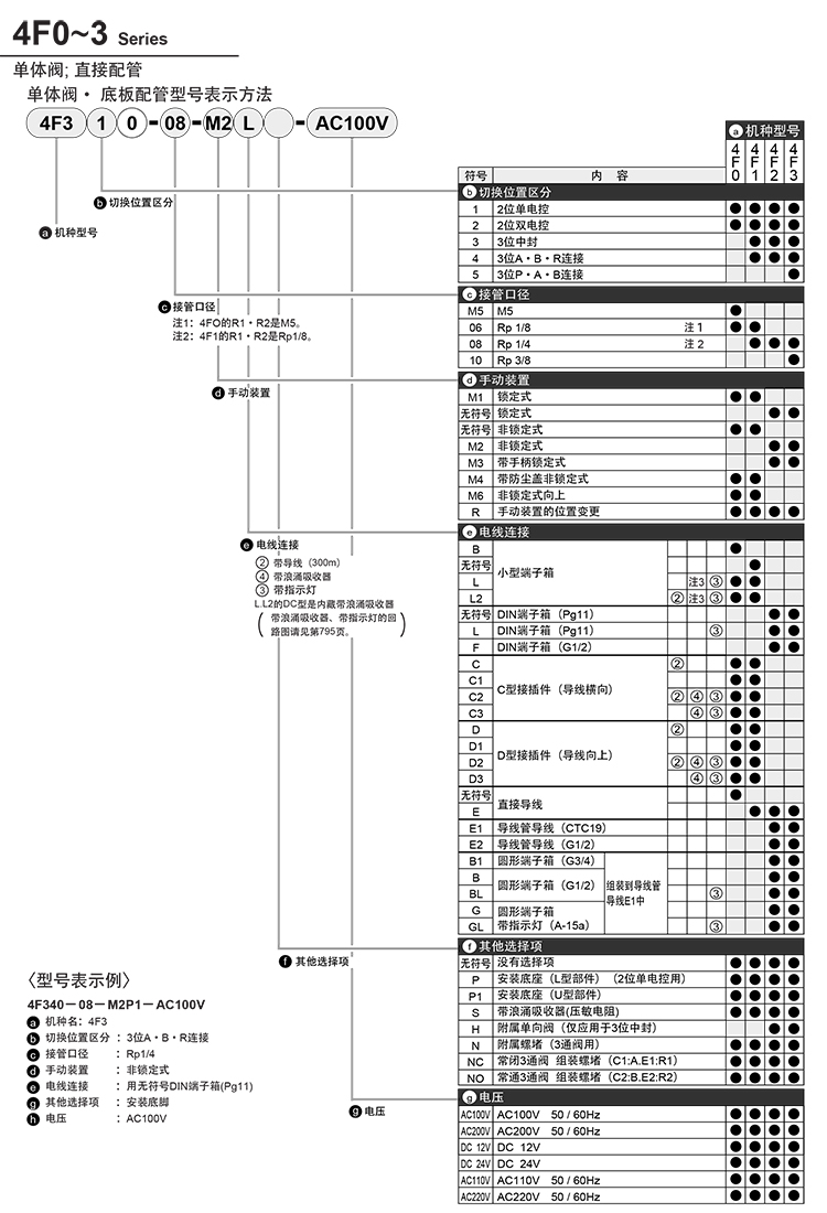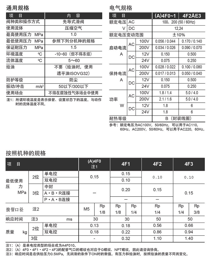 209230/4F310-10-M2LP-AC100V/单体阀 直接配管 先导式 5通阀 Selex阀4F3系列