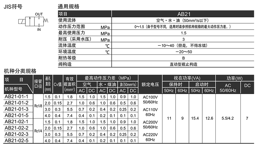 干燥空气用 直动式2通电磁阀AB31-Z...