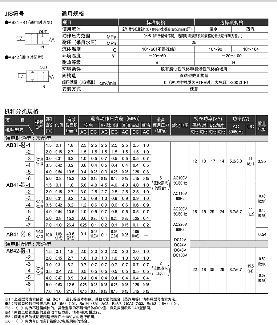 209242/AB41-03-8-B-2EABGSP6-AC100V/直动式2通电磁阀 单体AB41系列
