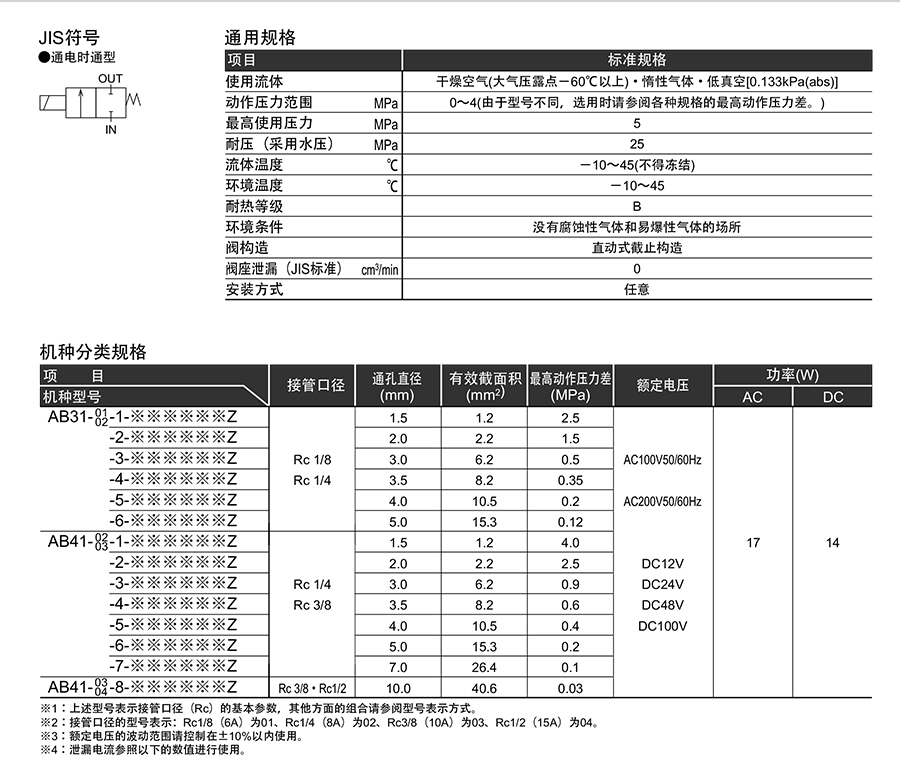干燥空气用 直动式2通电磁阀AB31-Z系列