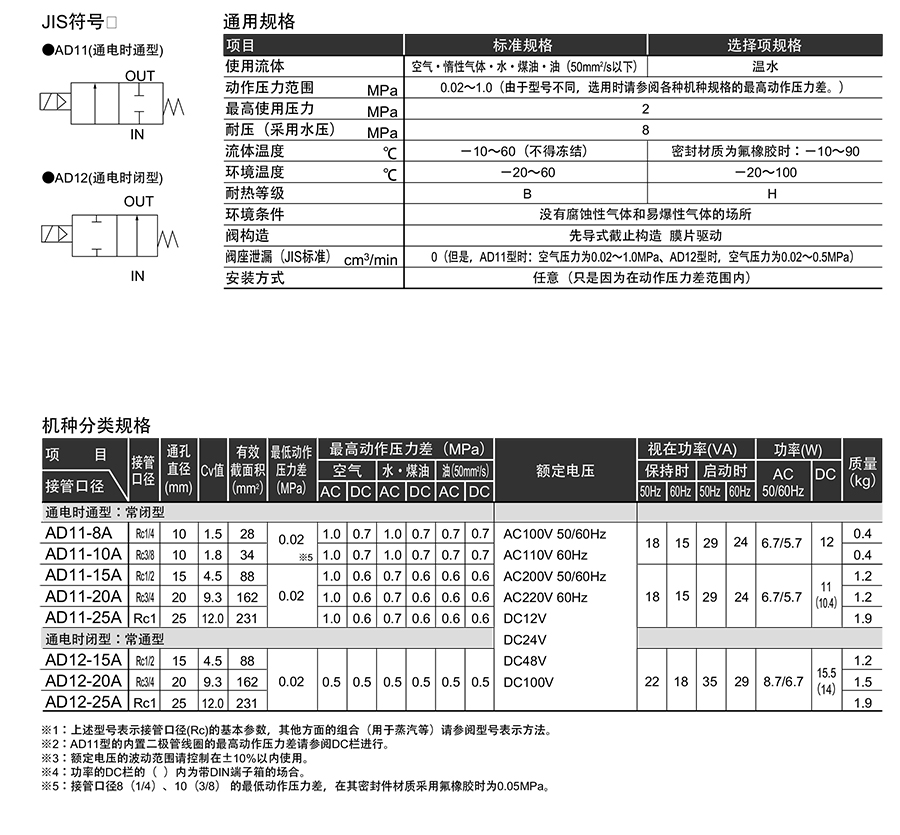 209261/AD12-15A-O3AABGS-AC100V/先导式2通电磁阀AD12系列