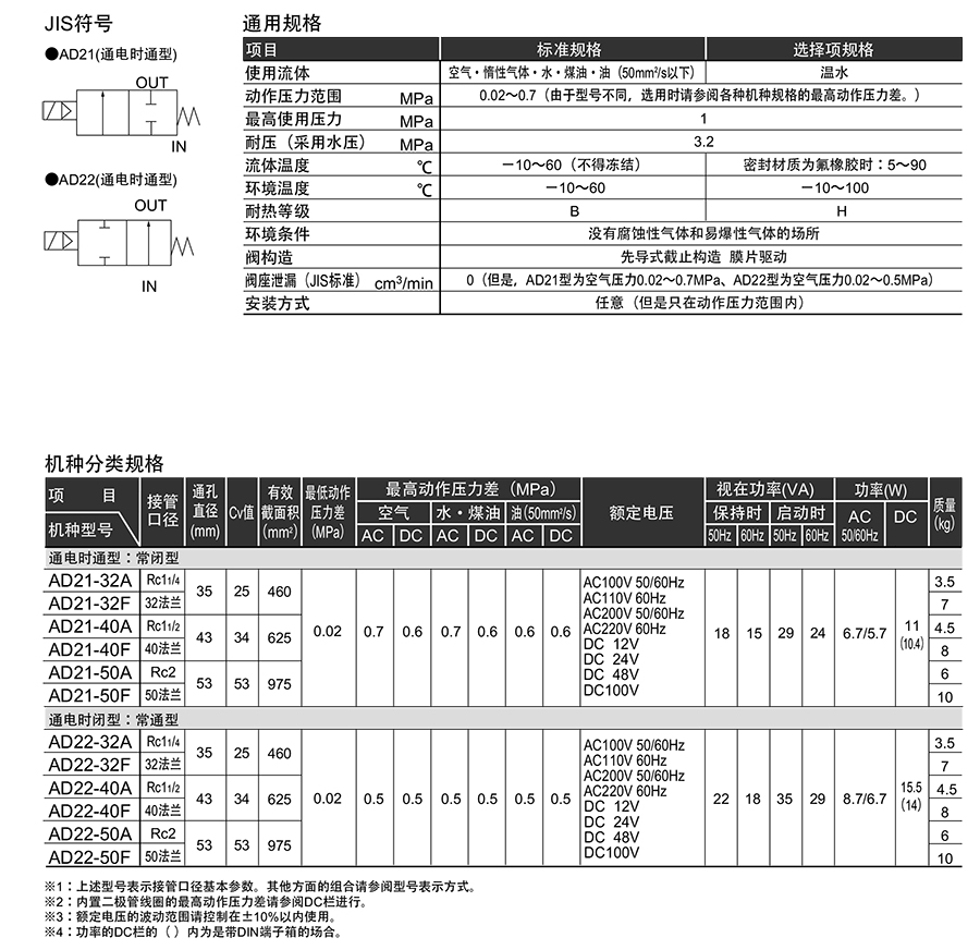 209271/AD21-32F-O3AAGS-AC100V/先导式2通电磁阀AD21系列
