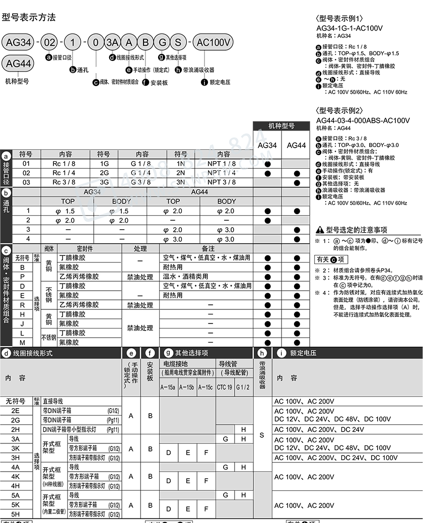 209355/AG44-03-4-B2EABGS-AC100V/直动式3通电磁阀AG44系列