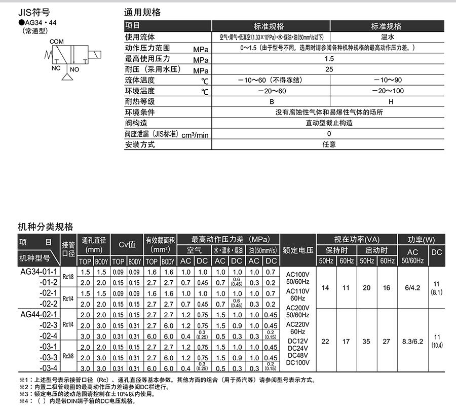 209354/AG44-03-3-B2EABGS-AC100V/直动式3通电磁阀AG44系列