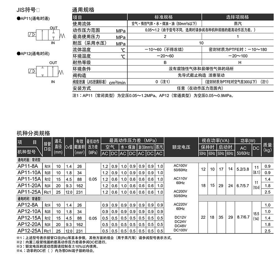 209391/AP12-15A-O3AABGS-AC100V/先导式2通电磁阀AP12系列
