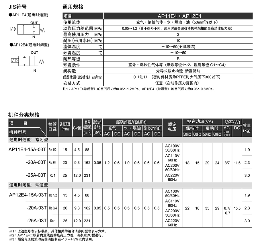 209403/AP12E4-15A-O3TA-AC100V/防爆型 先导式2通电磁阀AP12E4系列