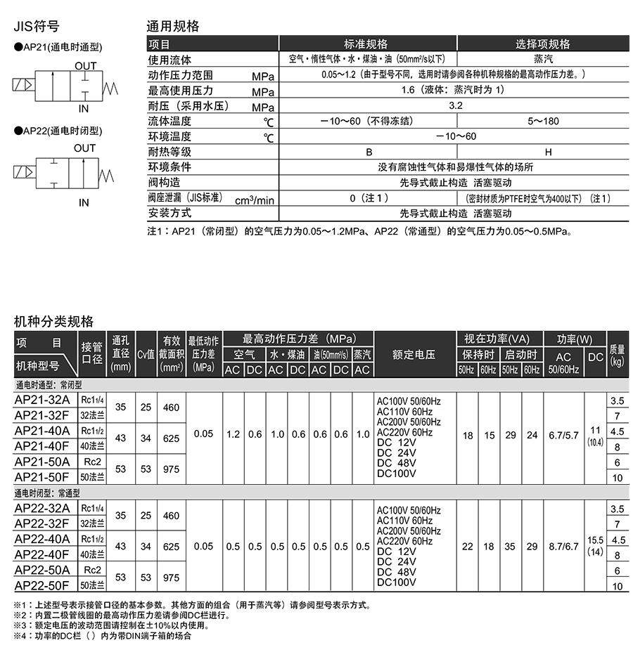 209412/AP22-32A-O3AAGS-AC100V/先导式2通电磁阀AP22系列