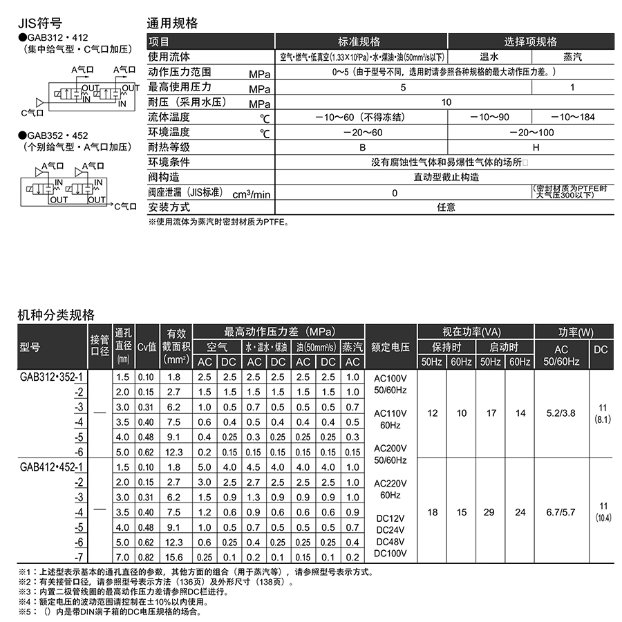 209770/GAB353-6-2-B2EAGS-AC100V/直动式2通电磁阀GAB352系列