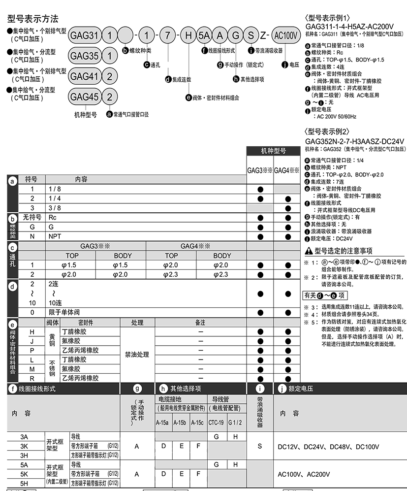 209824/GAG412-2-2-H3AAGSZ-AC100V/干燥空气用 直动式3通电磁阀 集成 单体阀GAG41-Z系列