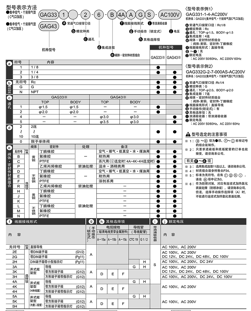209829/GAG332-1-2-B2EAGS-AC100V/直动式3通电磁阀 集成单体阀GAG33系列