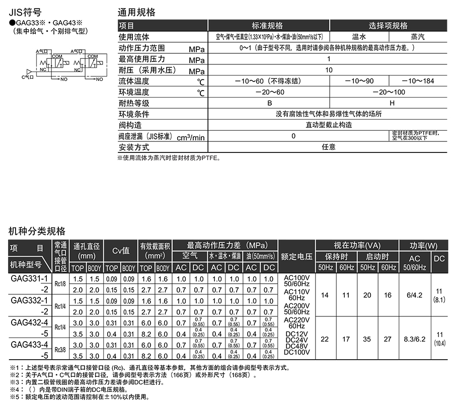 209834/GAG433-5-2-B2EAGS-AC100V/直动式3通电磁阀 集成单体阀GAG43系列