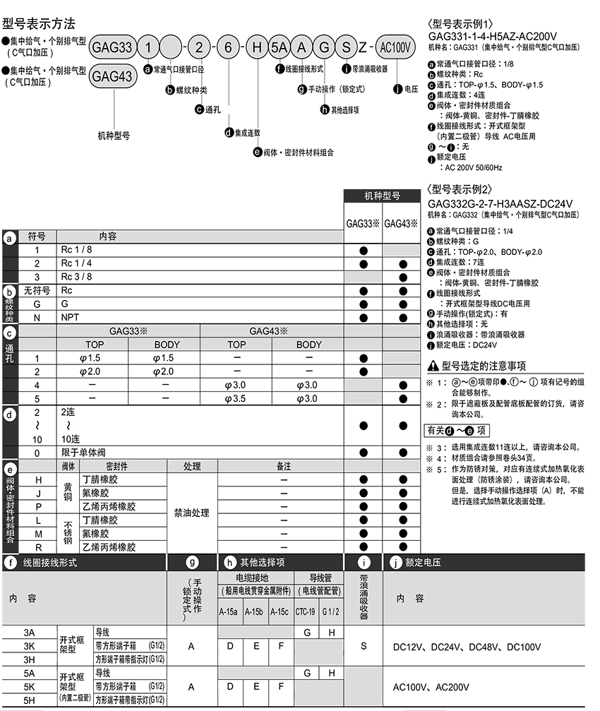 209836/GAG331-2-2-H3AAGSZ-AC100V/干燥空气用 直动式3通电磁阀 集成单体阀GAG33-Z系列