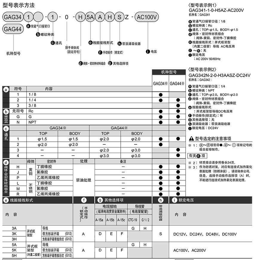 209854/GAG341-2-0-H3AAHSZ-AC100V/干燥空气用 直动式3通电磁阀 集成单体阀GAG34-Z系列