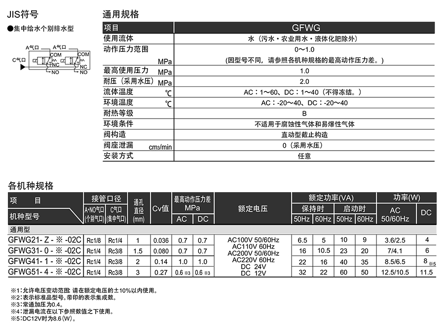 209968/GFWG41-1-2-O2C-1/水用 直动式3通电磁阀 集成GFWG系列