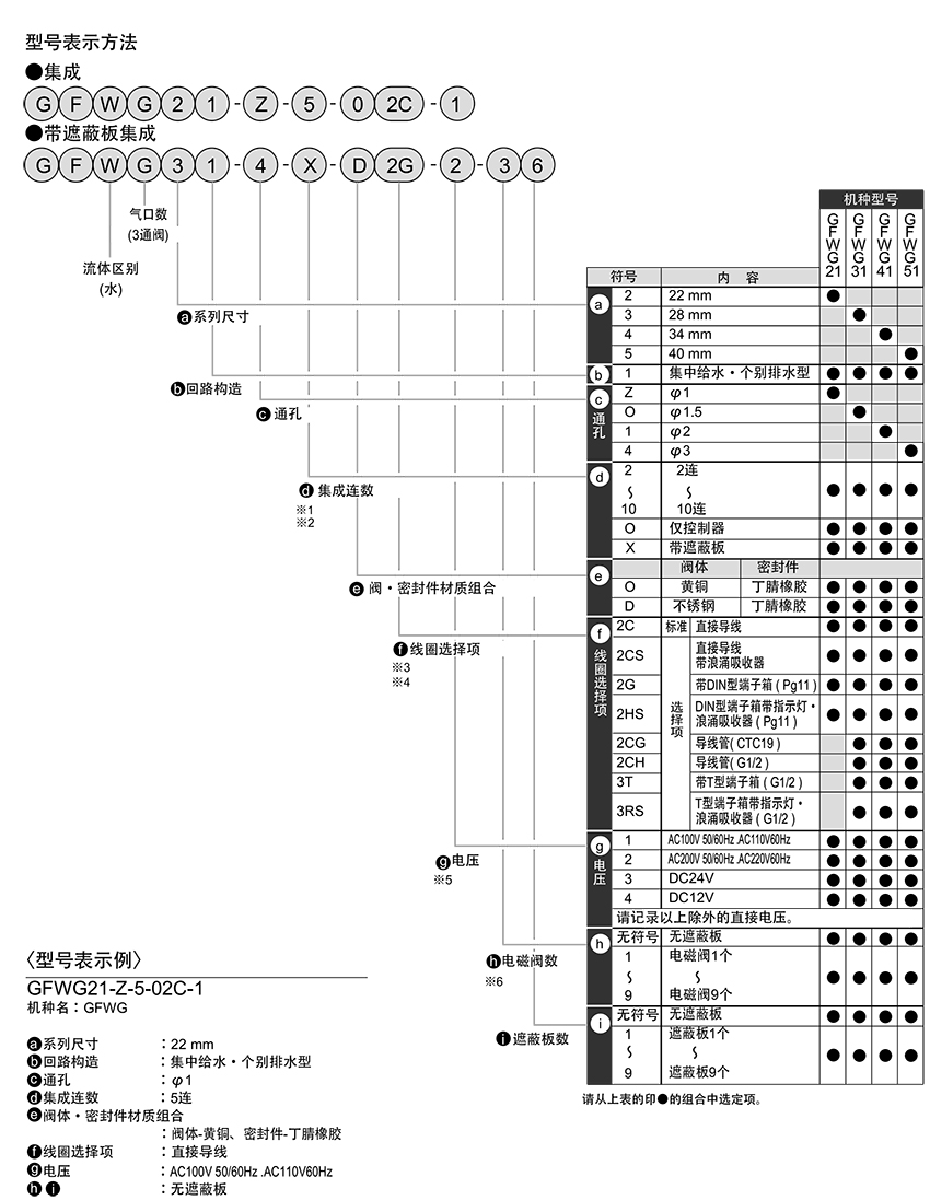 209966/GFWG21-Z-2-O2C-1/水用 直动式3通电磁阀 集成GFWG系列