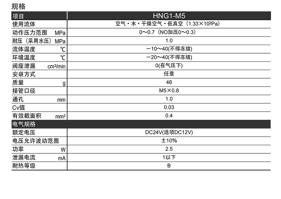 209972/HNG1-M5-DC24V/小型 直动式3通电磁阀HNG1系列