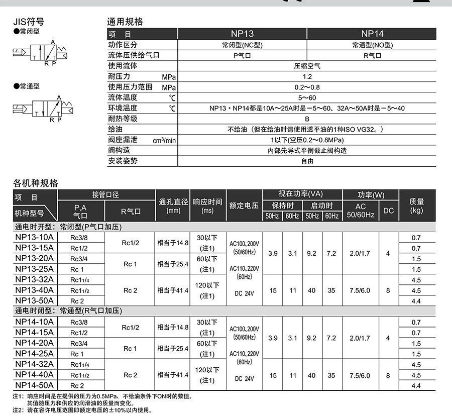 内部先导式3通阀 电磁阀搭载型NP13系列