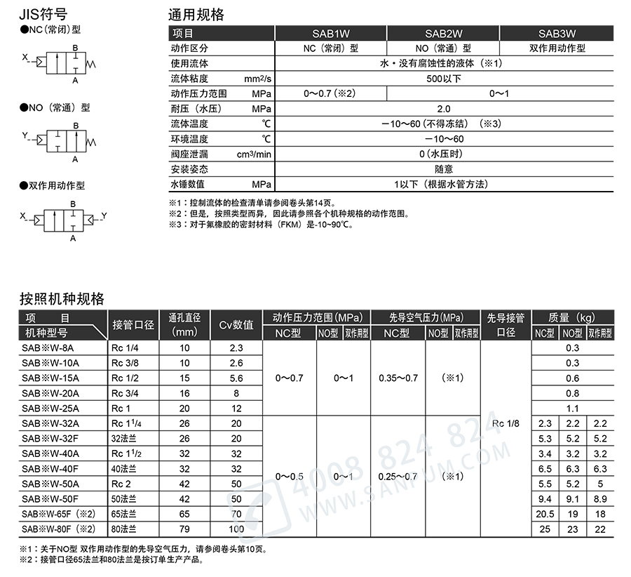 210124/SAB3W-50A-BB/气控式2通阀SAB※W系列