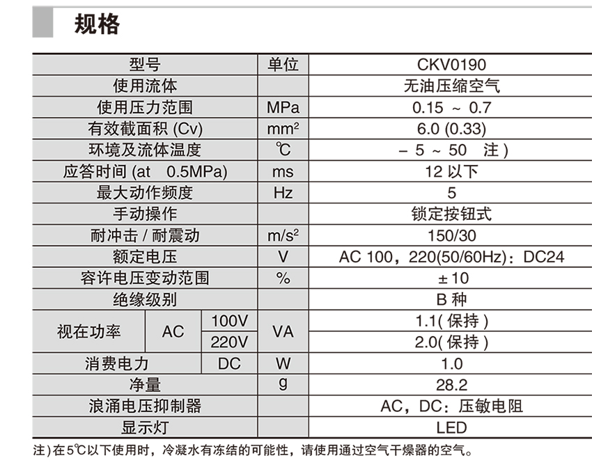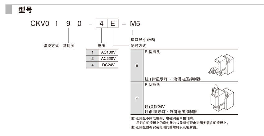 210223/CKV0190-4E-M5/3通先导式电磁阀CKV0190系列