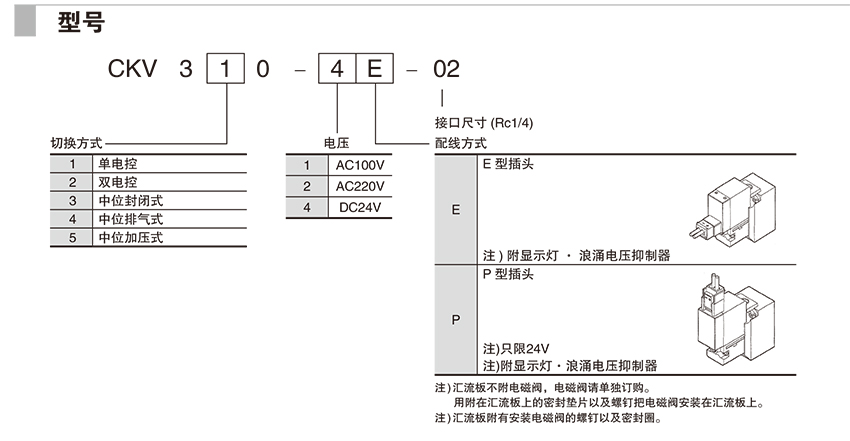 210230/CKV310-4E-02/5通先导式电磁阀CKV300系列