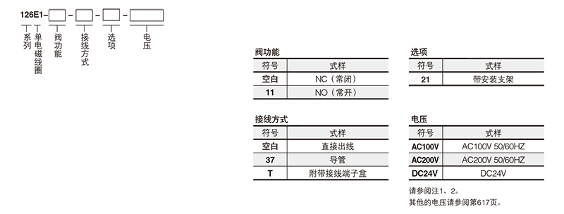 210284/126E1-37-21-AC100V/直动型2气口电磁阀126系列