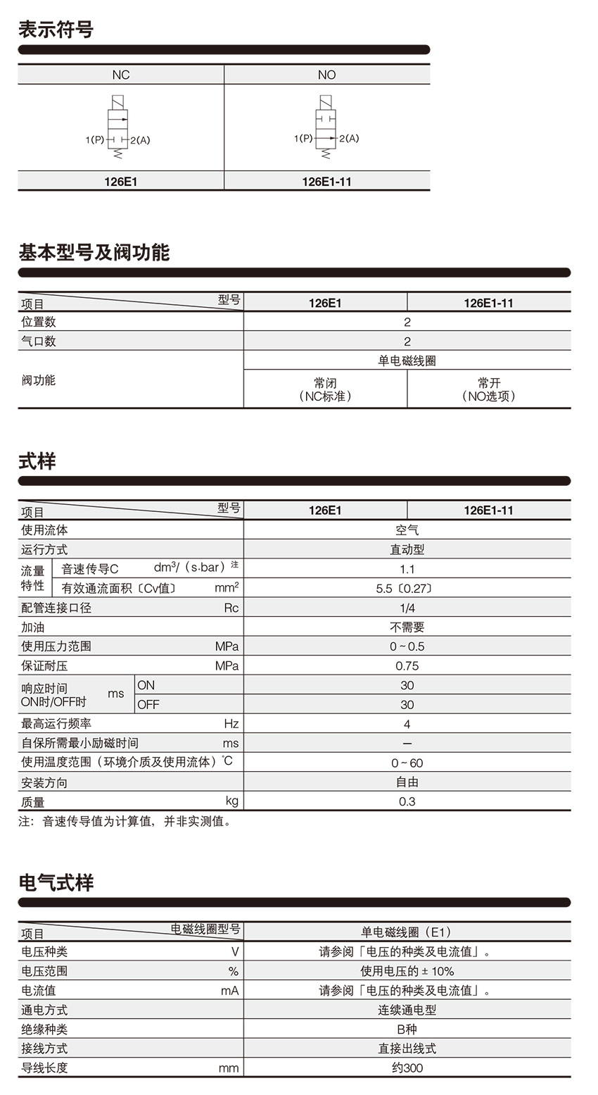 210285/126E1-11-37-21-AC100V/直动型2气口电磁阀126系列