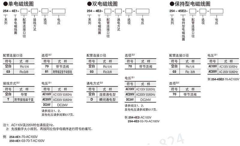 210311/254-4E1-03-T-70-AC100V/内部先导式电磁阀254系列