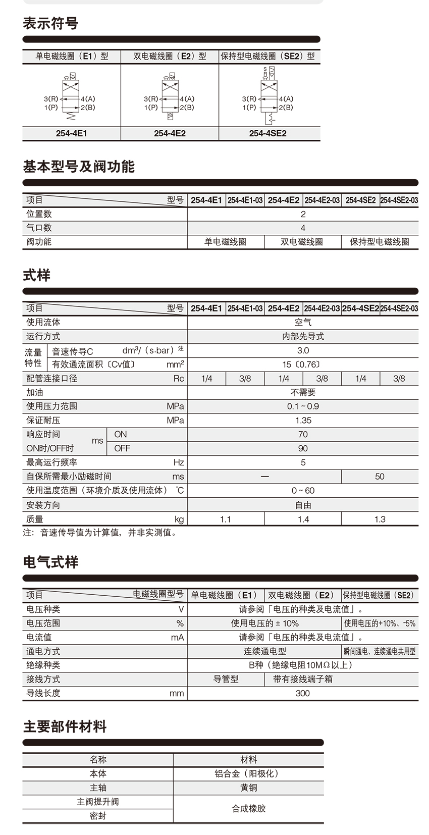 210315/254-4SE2-03-70-AC100V/内部先导式电磁阀254系列