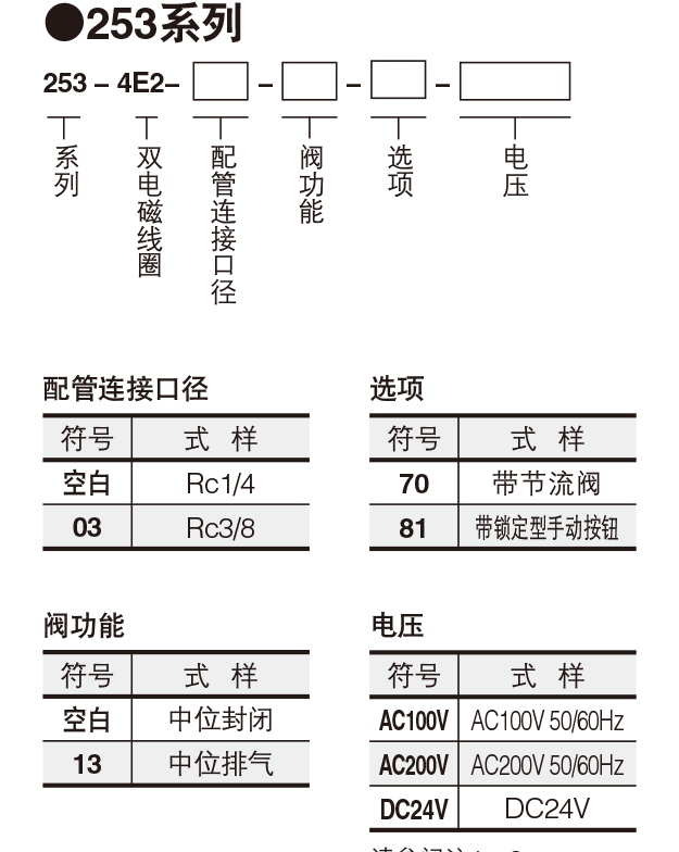 210350/253-4E2-03-13-70-AC100V/内部先导型4通电磁阀253-4E2系列