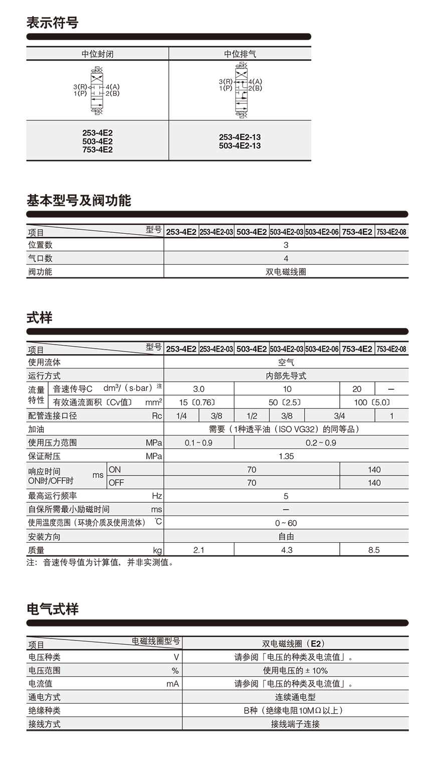 210349/253-4E2-13-70-AC100V/内部先导型4通电磁阀253-4E2系列