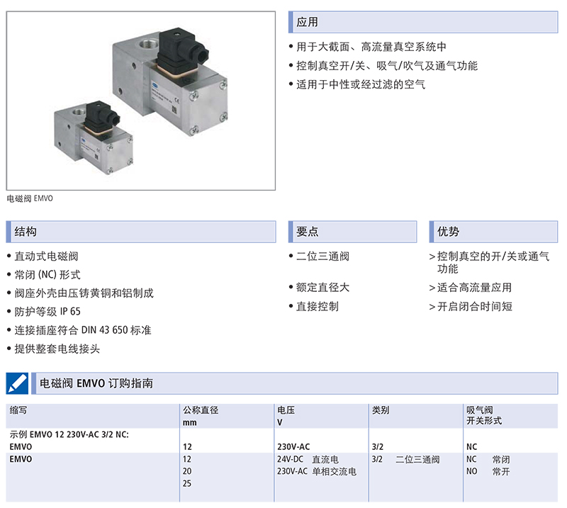 210380/EMVO-12-230V-AC-3/2-NC/二位三通电磁阀EMVO系列