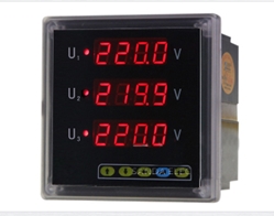 测量:三相电压;显示:三排LED同时显示A、B、C三相电压;用途:适用于电力电网,自动化控制系统,低压三相电流测量回路,适用于MKH、GGD等柜型;选配:RS485通讯功能、二路开关量输入(2DI)、二路开关量输出(2DO)、一路模拟量输出(1AO).