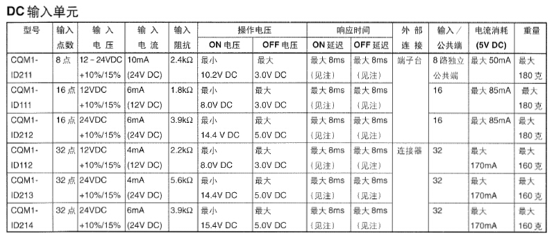 211655/CQM1-ID213/CQM1H系列DC输入模块