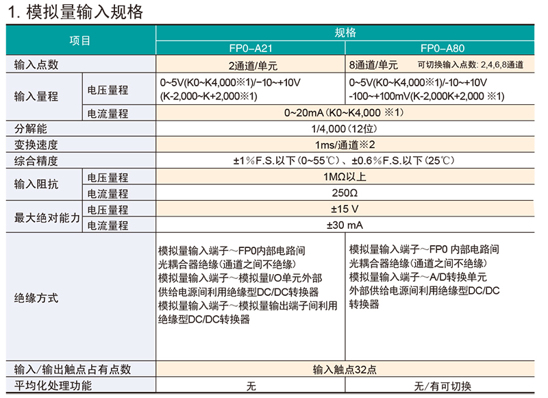 211749/FPO-A80/FP0R系列模拟量输入模块