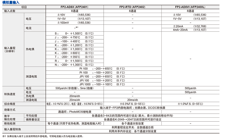 211770/FP2-AD8VI/FP2SH系列模拟量输入模块