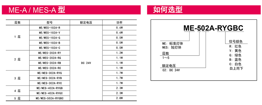 212907/MES-502ARYGBC/直径25mm MES-A多层信号灯