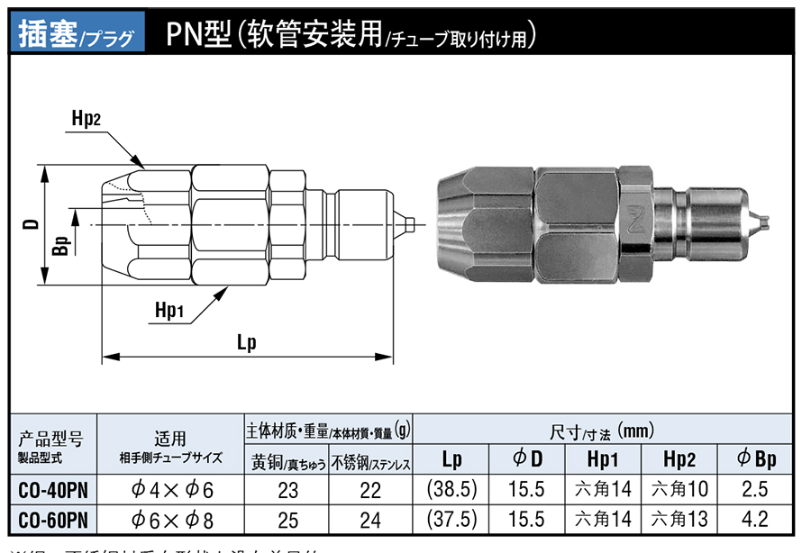 213943/CO-60PN/PN 软管安装用小巧型快速接头