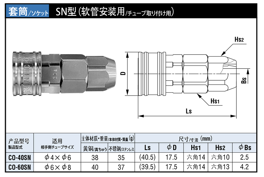SN软管安装用小巧型快速接头