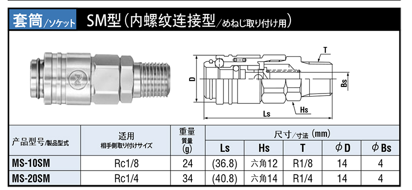 213952/MS-10SM/SM 内螺纹连接型小巧型快速接头