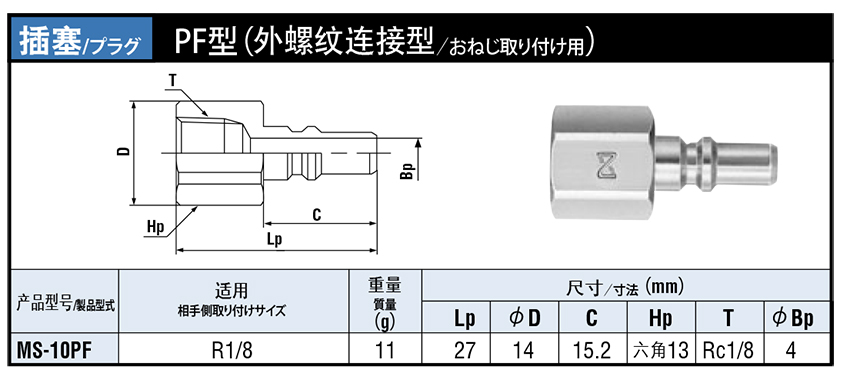 213954/MS-10PF/PF外螺纹连接型小巧型快速接头