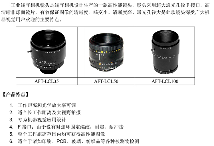 214355/AFT-LCL100/AFT-LCL100工业线阵相机镜头