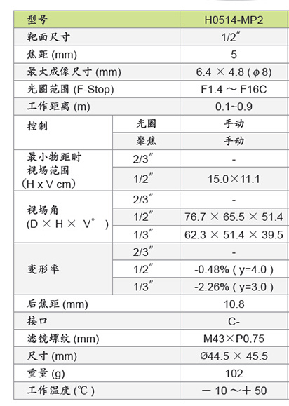 H5014-MP2 COMPUTAR百万像素定焦镜头