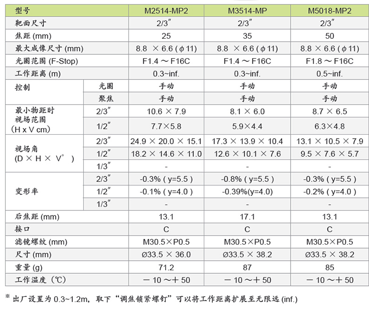 214372/M5018-MP2/M5018-MP2 COMPUTAR百万像素定焦镜头