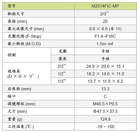 214384/M2514FIC-MP/M2514FIC-MP 5百万像素ITS专用定焦镜头