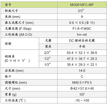 214387/MG0918FC-MP/MG0918FC-MP 5百万像素ITS专用定焦镜头