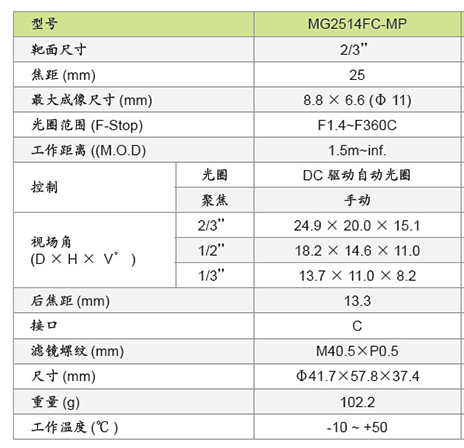 214390/MG2514FC-MP/MG2514FC-MP 5百万像素ITS专用定焦镜头