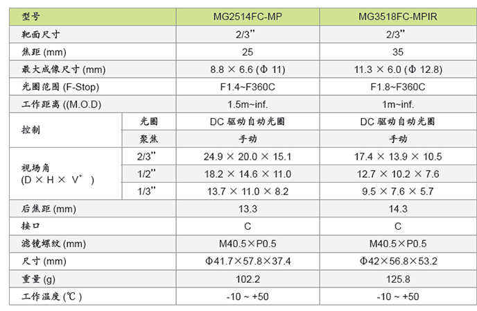 214391/MG3518FC-MPIR/MG3518FC-MPIR 5百万像素ITS专用定焦镜头